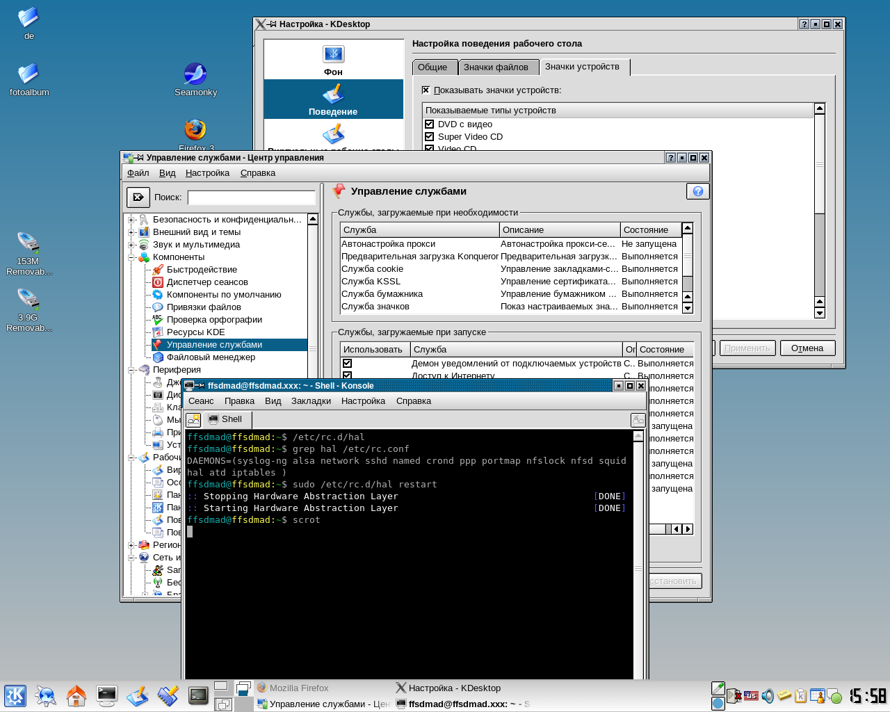 - включить соответствующие службы KDE/Gnome