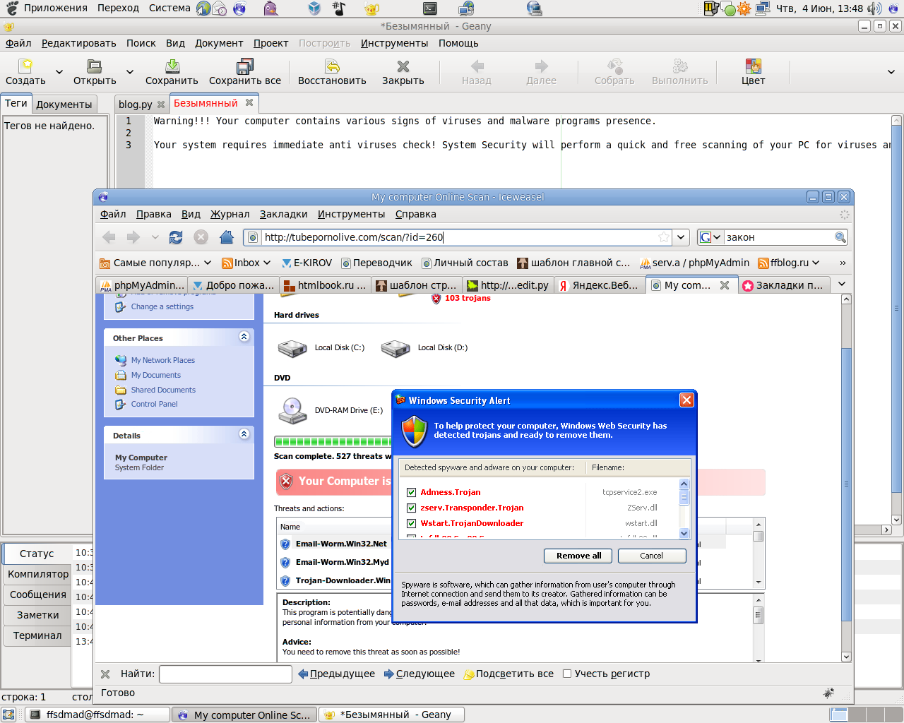 С него перебрасывает на http://tubepornolive.com/scan/?id=260 а там появляется во такая штука, крайне неуместная в моём GNU/Linux/Debian
