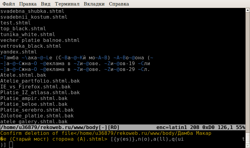 Всем известно, что в BSD не могут осилить UTF8, а виндузятники до сих сидят в CP1251 и потому иногда можно увидеть на хостинге файл с именем в непонятной кодировки. При это ни прочитать его и удалить без файлового менеджера не получится