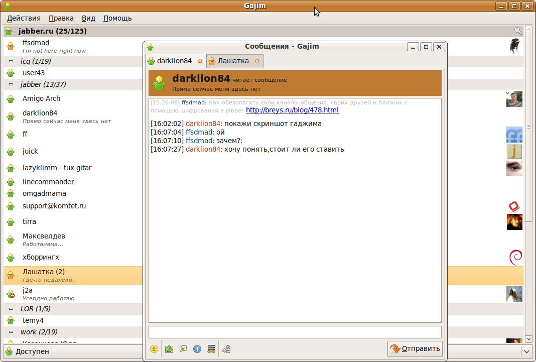 - импортировать публичные ключи своих друзей шпиёнов в Gajim