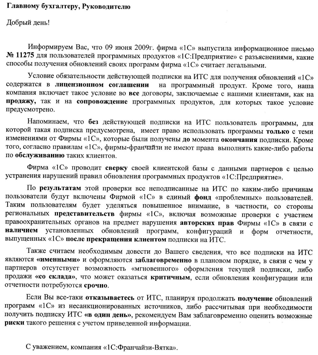 В общем, читаем письма с угрозами от беспредельщиков из 1С