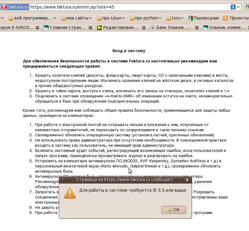 Но. В требованиях к компьютеру указаны системы MS Windows 98/NT/2000/XP и браузер IE 5.5. Дело в том, что на моем компьютере и ноутбуке жены установлена ОС GNU/Linux Ubuntu 9.10, соответственно и браузера IE 5.5 (это ведь устаревшая версия? сейчас, вроде бы, используется версия 8) у нас нет. Вместо него используется Mozilla Firefox. В связи с этим вопрос - каким способом мы можем пользоваться службой "плати-из-дома"? Возможно, на сайте http://www.bank-hlynov.ru/ru/notes_333.html просто не указаны необходимые программы для пользователей Linux - тогда где их можно скачать?