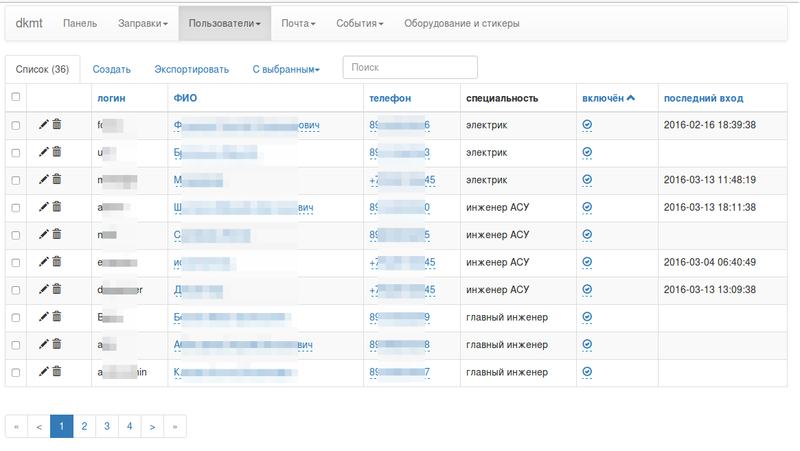- редактирование данных заявки возможно как в панели управления так и с помощью специальных форм управления, ограниченных с помощью ролей пользователей