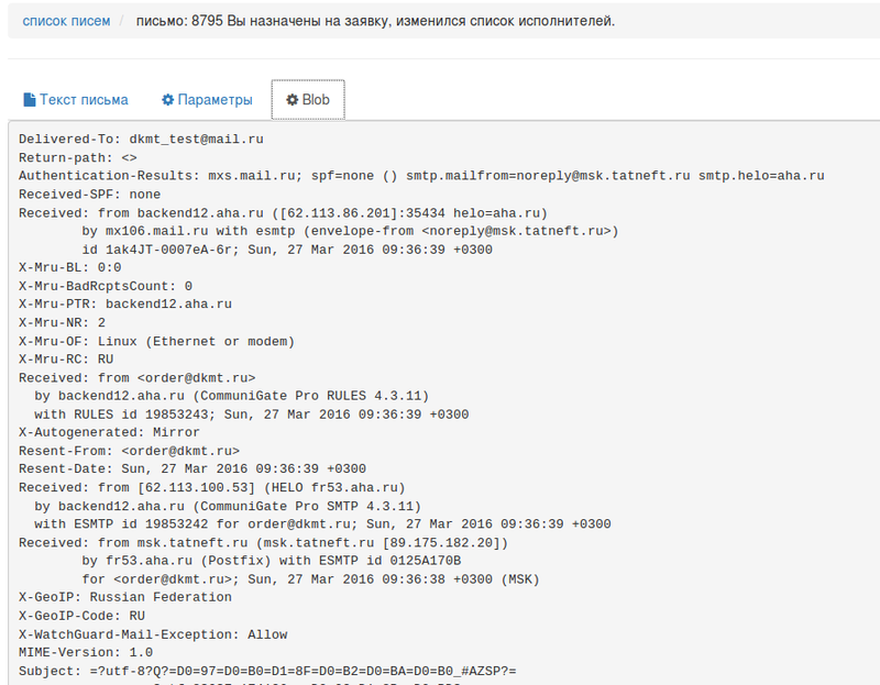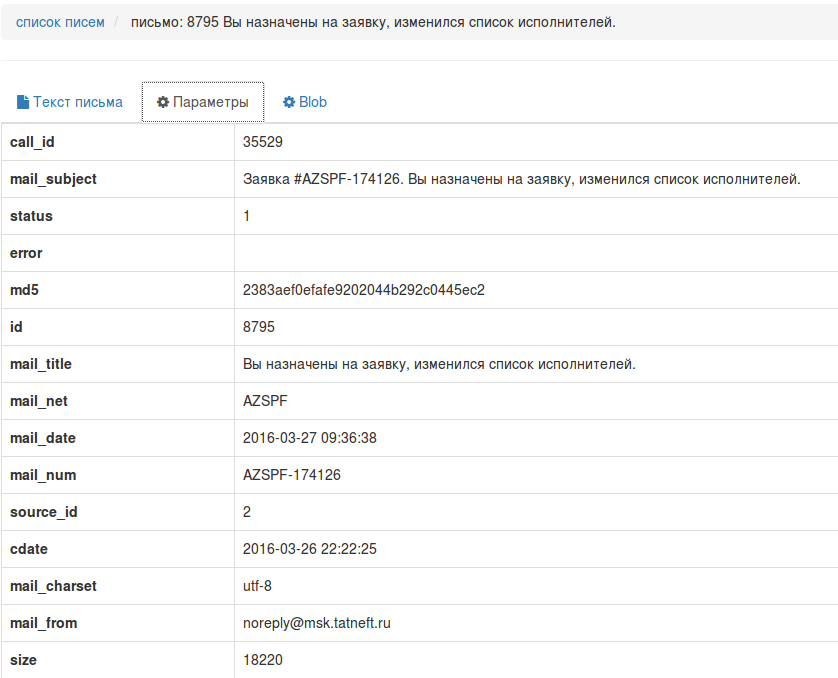 Mail / модель реализующая хранение и анализ входящей почты от системы Интрасервис
