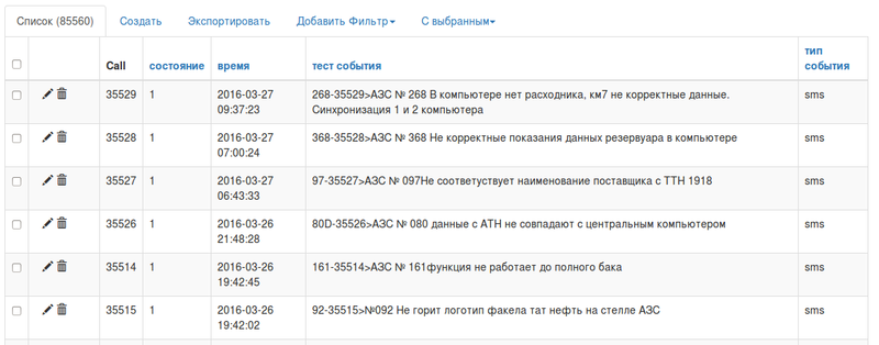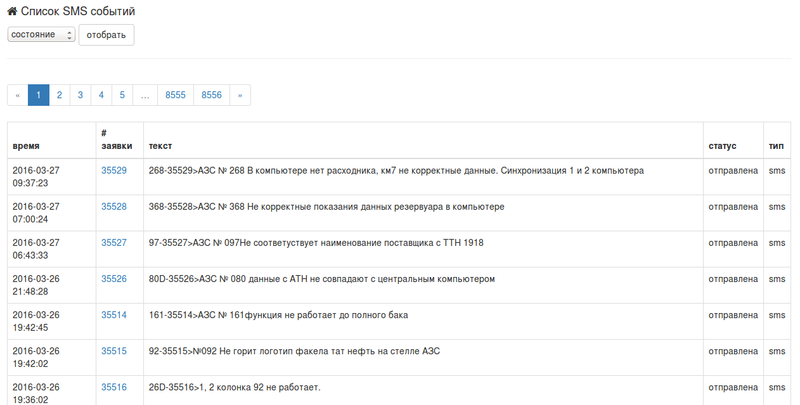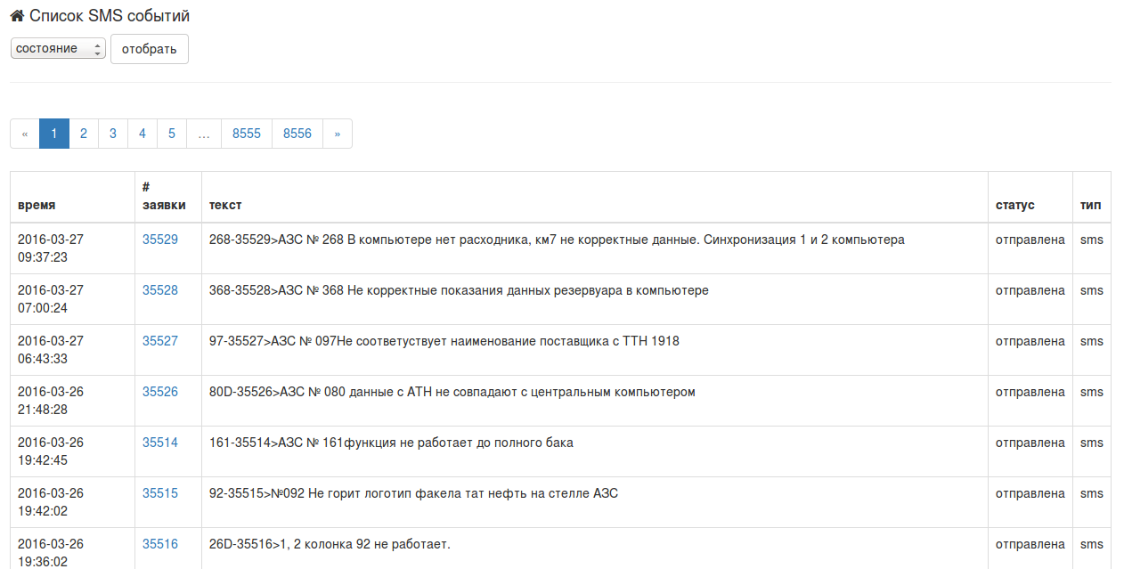 - смс уведомления в момент создания заявки рассылаются диспетчерам и менеджерам связанным с АЗС на который поступила заявка