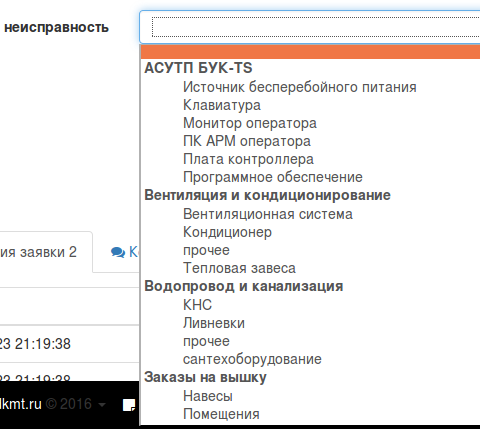 - использовуется диспетчерами и менджерам входяших заявок для уточнения типа неисправности, а так для поиска