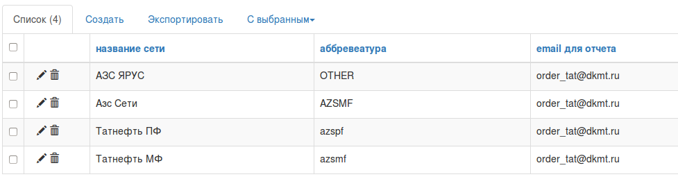 - сети заправок используются при формировании списка входящих заправок пользователю с ролью диспетчер