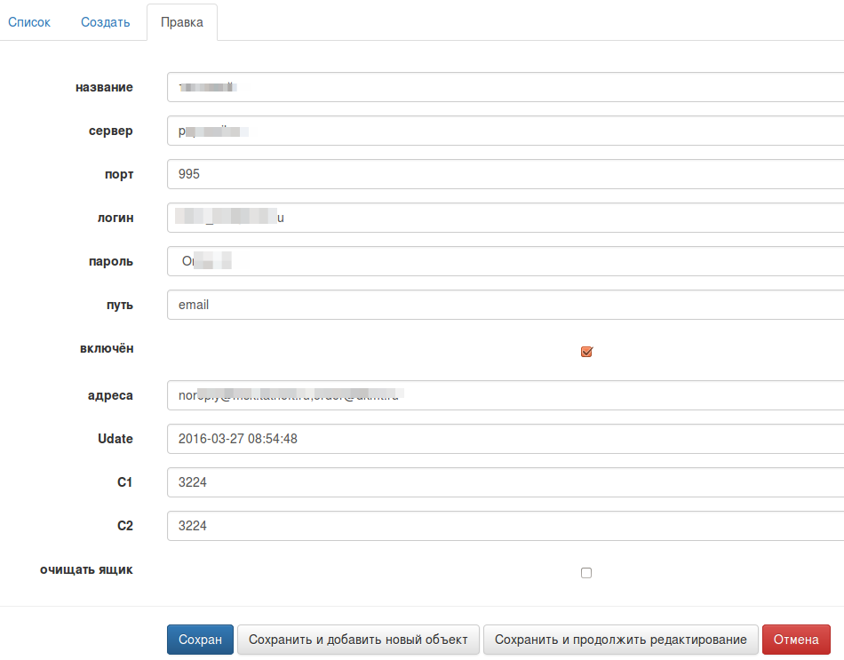 Mail_Source / модель источник входящей почты, используется для подключения различных источников входящих заявок